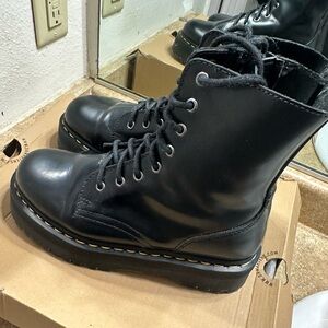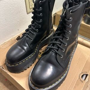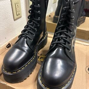 Black Size 9 Platform Dr. Martens. Used a total of three times. In perfect condition, with minimal creasing. Already waterproofed with Dubbin Wax. In original packaging