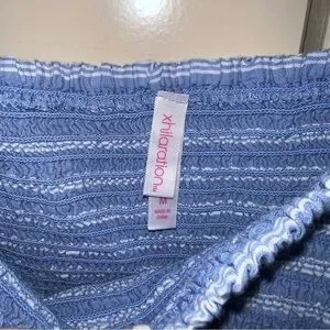 Xhilaration Blue Striped Smocked Square Neck Crop Top Puff Sleeve Shirt Sz M