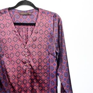 The Limited Silky Style Long Sleeve Red & Blue Ladies Blouse