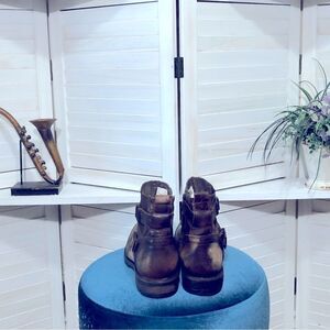 Steampunk gothic retro boho harness buckle zipper distressed rust brown biker boots sz 10.5