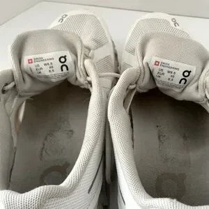 Used Women’s On Cloud Sneakers in White Sand Size 8.5. They are off white in color.