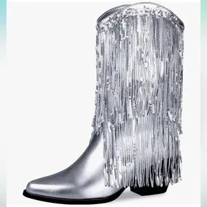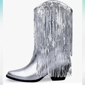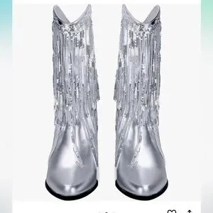 *NEW* TAYLOR SWIFT INSPIRED SILVER SEQUIN FRINGED COWBOY BOOTS 9.5