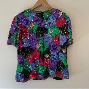 Vintage Black Tie Oleg Cassini Multi Colored Sequin Festival Top