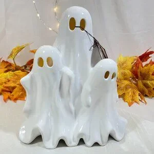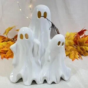 Hallow Home Ceramic Led Light Up Spooky Ghost Trio Halloween Decor 11" New