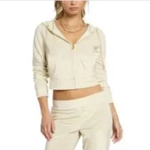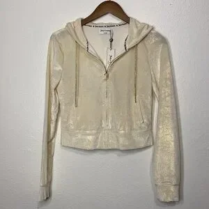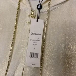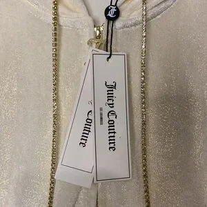 Juicy Couture Zip Hoodie / Jacket with Bling “Juicy” on Back. Rhinestone Drawstring. Size Small. NWT New With Tags. Retails for $159.00!!