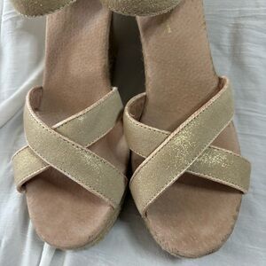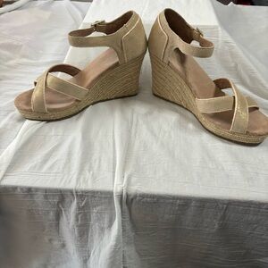 TOMS Golden Beige Cross Strap Wedge Heels 8