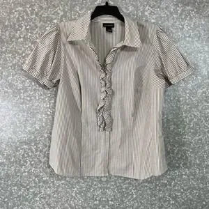 Lane Bryant Women's Plus Size Striped Ruffle Button Up Top - Size 18/20 - Blouse