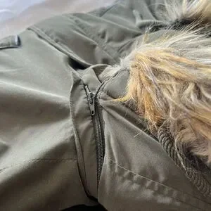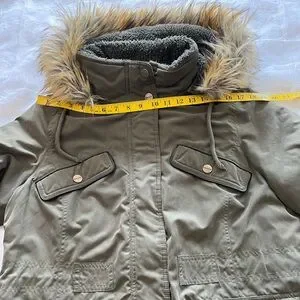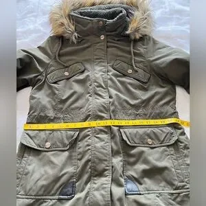 DKNY Women’s Large Hunter Green Faux Fur Lined Hood Button/Zip Coat