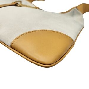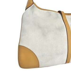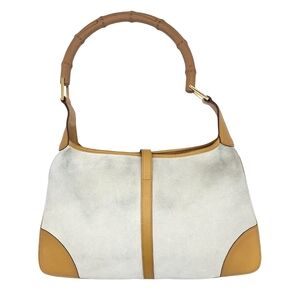 Gucci Vintage Jackie Suede & Leather Hobo Bag with Bamboo Handle. Color: very light grey/beige suede and tan leather. Made in Italy. Tom Ford era.