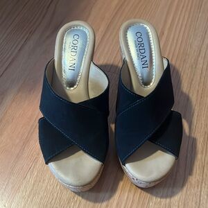 Cordani black leather cross slide wedge size 37