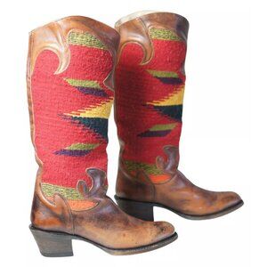 Stetson 17" Tall Knee Hi Cowboy Riding Boots Southwest Blanket Shafts Women's 8