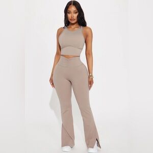 Fashion Nova Pilates Girl Active Flare Pant - Taupe Size Small
