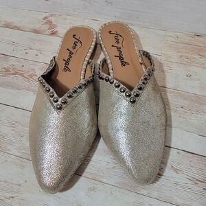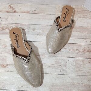 Free People NWOB Studded Newport Flats in metallic leather EU36