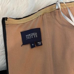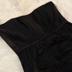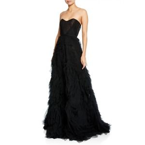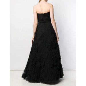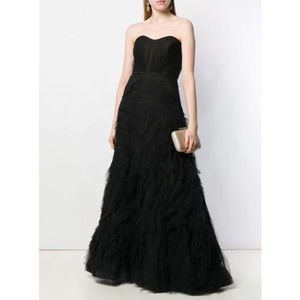 Marchesa Notte Strapless Textured Tulle Gown Corset Formal Black Tie Dress Black