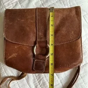 Fossil crossbody leather purse. Front magnetic closure. So many pockets and spaces for organizing your belongings: flat pockets inside and on the reverse, zippered pocket on interior, additional zippered compartment on the reverse featuring card holders and more storage.