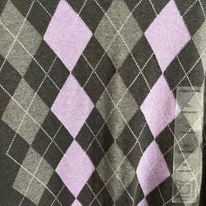 Claiborne Mens XL 90s Y2K Purple Gray Argyle V-Neck Sweater