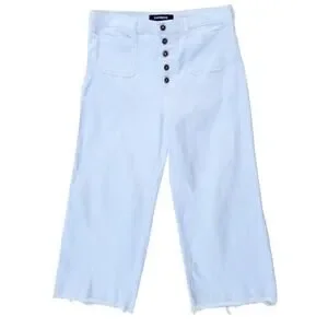 Express Womens High-Rise Wide Leg Cropped Stretch Pant 14 Raw Hem. Button Fly
