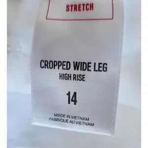 Express White High-Rise Wide Leg Cropped Stretch Plus Pant 14 Raw Hem Button Fly