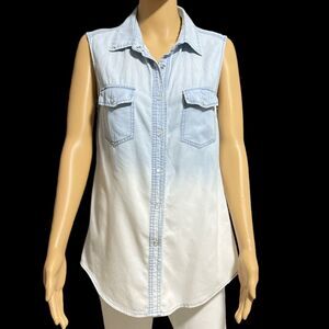 Paper Crane Women's Denim Double Pocket Shirt Light Blue Sz/M