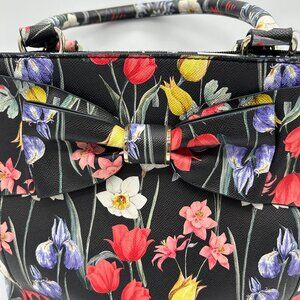 APT 9 Floral Print Handbag Tote With Bow Detail & Multiple Pockets