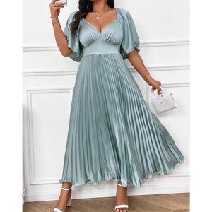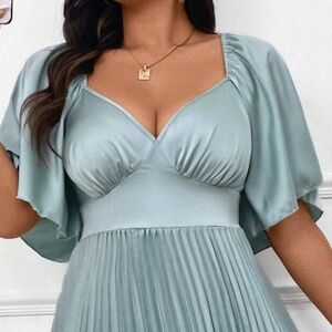 Plus Mint Green Pleated Butterfly Short Sleeve Dress