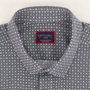 UNTUCKit Kamari Performance Button Front Shirt Mens Large Blue Geometric Nylon