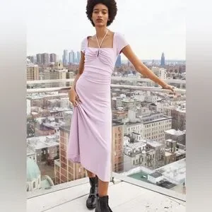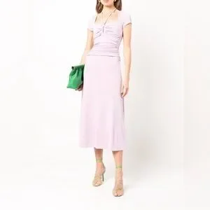 Cinq a Sept Janis Midi Dress Size 6 Pale Iris. NWT. Ruched Key Hole Stretchy