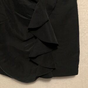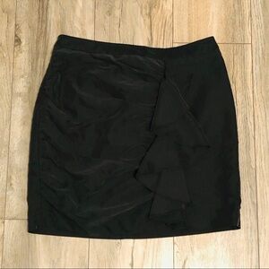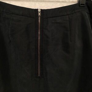 This skirt is black, but the black is kind of like a metallic color. The material is soft like a bit less than suede. It is in excellent condition, despite being used. Please see photos for more details.