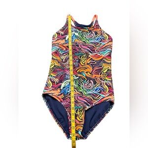ATHLETA GIRL girls FIELD DAY one piece e racerback colorful swimsuit swimwear XL/14.