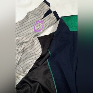 Only worn once, like new. herringbone weave pattern under the right lighting. Two functional pockets seams not yet open. Fully lined. Back vent not yet open. Nice shield pattern on the buttons Two minor marks (not from wearing) on the lining of one sleeve - as shown in the last photo Fit slightly smaller than Large. Smoke and pet free home Reasonable Offers will be seriously considered. Please feel free to ask all questions before purchasing. As I haven’t figured out the return part. Please note that all measurements are approximate. More measurements will be provided (with photos), upon request, by adding to the listing.