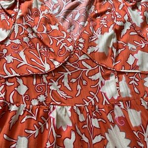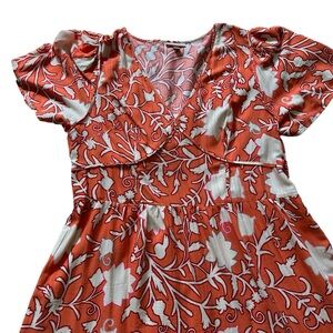 Knox Rose tiered midi dress. V neck with corset details, without the discomfort of a true corset. Flutter sleeves. Elastic at back waist for a perfect fit.