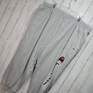 CHAMPION BIG MAN Gray Powerblend Joggers Script LOGO Pockets Size 4XL Cotton. Excellent Condition- Pre-owned. Waist 23" side to side unstretched, inseam 30". Offers welcome