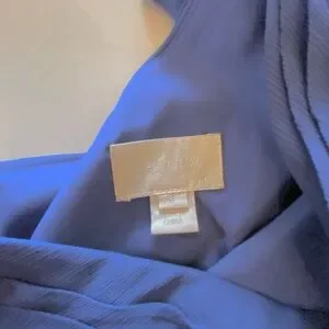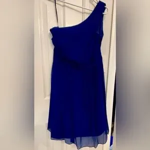 For the classic beauty. This stunning silk navy blue dress is fully lined and hits at the knee. Hidden side zipper. Worn once and dry cleaned immediately. Size 6 but runs small. From a pet free/smoke free/clean home.