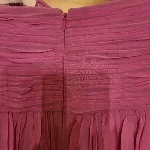 Donna Morgan 100% Silk dress violet beaded pink crepe rushed fit flare