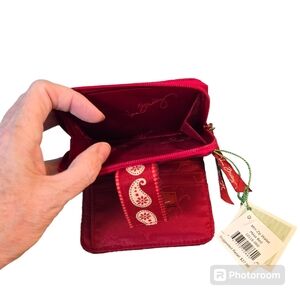 New With Tag, Vera Bradley Retired Bi-fold Wallet with Snap Closure and zippered coin purse in Mesa Red which is a brick red color with black and white paisley print. Never used. Collectible item. Measurements in pictures. Smoke-free, pet friendly home with next business day shipping.