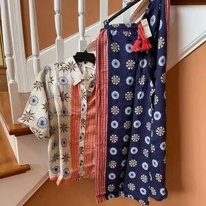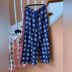 Top rated, sold out @anthro ; perfect summer breezy outfit for day or to dress up at night. Linen/viscose blend; elastic waist with colorful tie pants and wooden button oversized top; nautical theme print. Smoke free home.