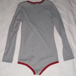 Womens π· Adorable Gray And Deep Plum Long Sleeve Full Back Bodysuit Play Suit