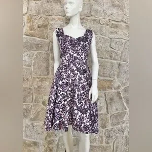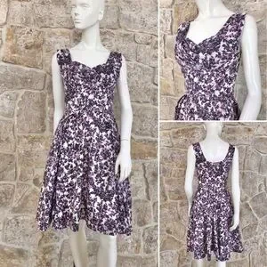 Good vintage condition, looks fantastic when worn. I think color may be somewhat faded from washing it. The white areas aren’t super white. It looks like original owner removed skirt lining, and may have shortened it by hand. There is a small area on underside of hem that has slight discoloration that may come out with cleaning. This discoloration does not show when worn. Dress is clean, fresh, ready to wear!