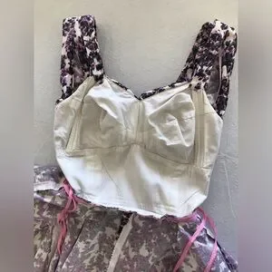 Outer neckline is lower than the inner and is attached at the shoulder straps and waist