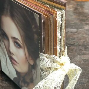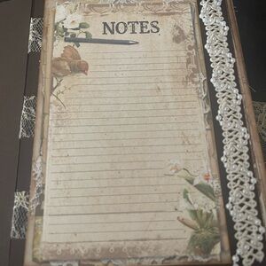 This journal has 34 pages to write on and to tuck little memories. It has pockets and book marks. The journal measure 5x7. Beautiful journal. Hand made by me. Perfect for gifting.