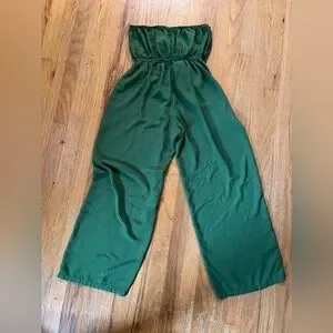 Size small green pants romper. Color is the one where I am wearing it. It looks darker in the other pictures.