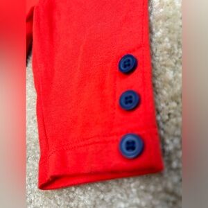 -Vibrant red with blue buttons
