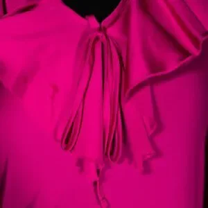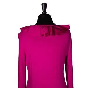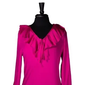 Ralph Lauren Women's Blouse Pink Satin Ruffle Stretch V-Neck 3/4 Sleeve Top L