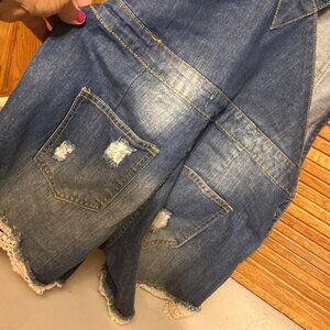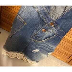 Denim Overall Shorts With Distressed Details & Lace Trim By Mistic Prysm S