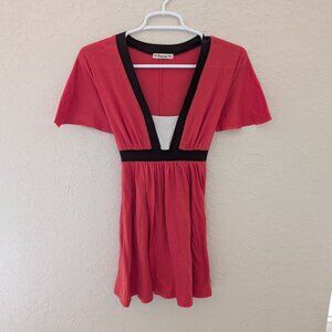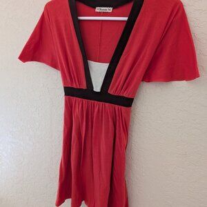 Adorable vintage Forever 21 short sleeved, color block top or mini dress with tie at the waist. It can either be a long top or a very short dress depending on your measurements. In good condition with no defects, but some very mild pilling. No size on tag.