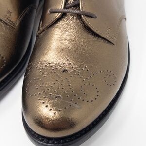 The Office of Angela Scott Ms. Presley Bronze Lace Up Derby Oxford Loafer. Brand new but has some scuffs on the bottom from trying on. Also has one small scuff on the toe, please see pic. Size 37 Does not ship with original box.