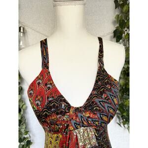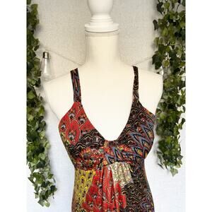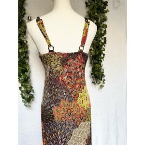Raindrops by Papillon Brown Orange Peacock Maxi Dress Women's Small
