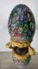 Murano Millefiori Satin Matte Glass Paperweight Egg on brass stand.
