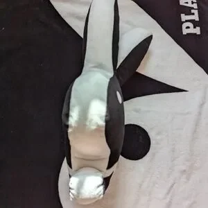 Ok condition, floppy ears and loose filling, a bit worn but still cute as decoration