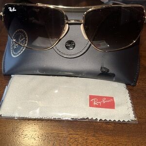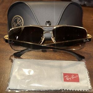 Ray-Ban ® RB3483 Sunglasses are a distinguished design with a classic metal double brow bar sitting on an oversized squared metal frame. Classic plastic temples create a timeless Ray-Ban look with uncompromisable quality. Decorated with a Ray-Ban signature logo on temples and lens, the adjustable nose pads provide you with a comfortable and customized fit. This model comes with this season's latest lens colors and treatments in polarized, gradient, and mirrored lenses. The universally flattering fit will look great on medium to large faces.